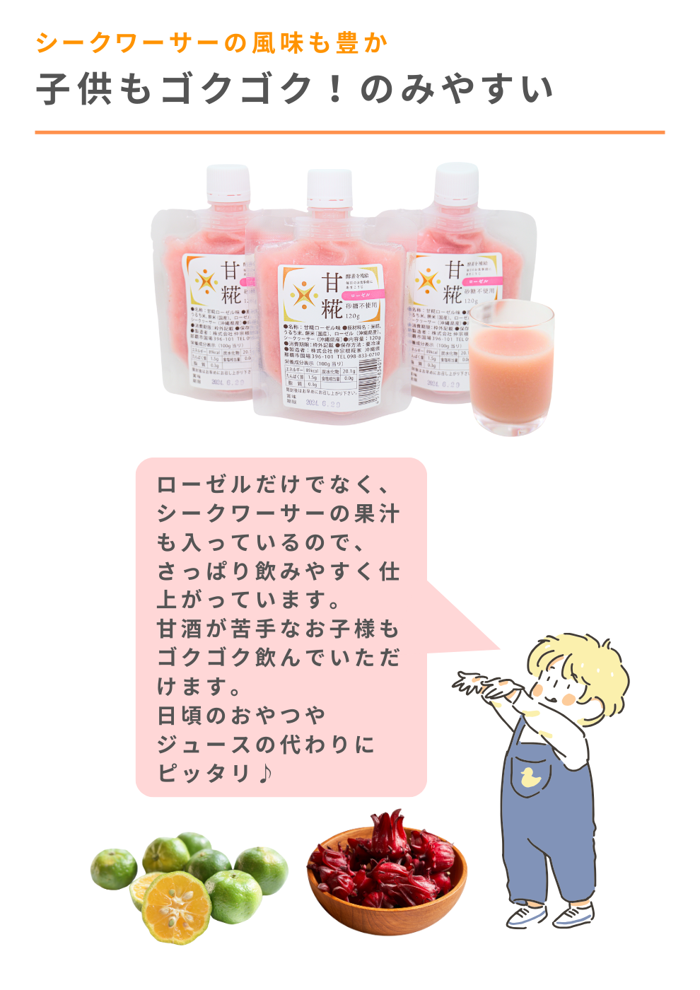 甘酒の風味や香りが苦手という方やお子様にも大人気の商品です。
