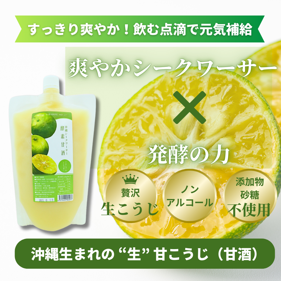 シークワーサーの酸味と甘酒の甘みがマッチしてとても飲みやすくなっています。