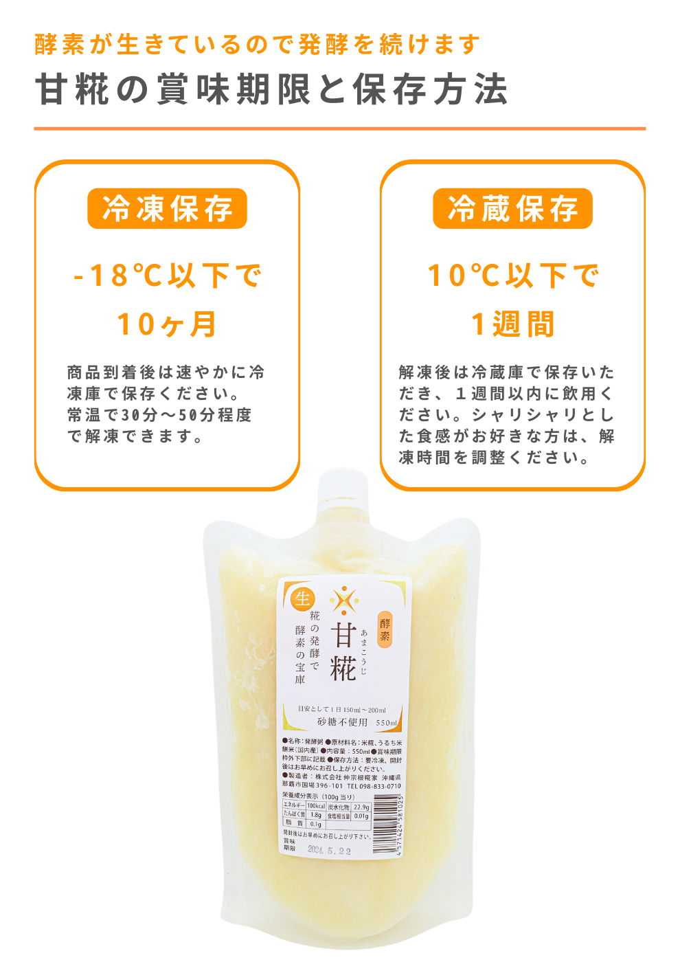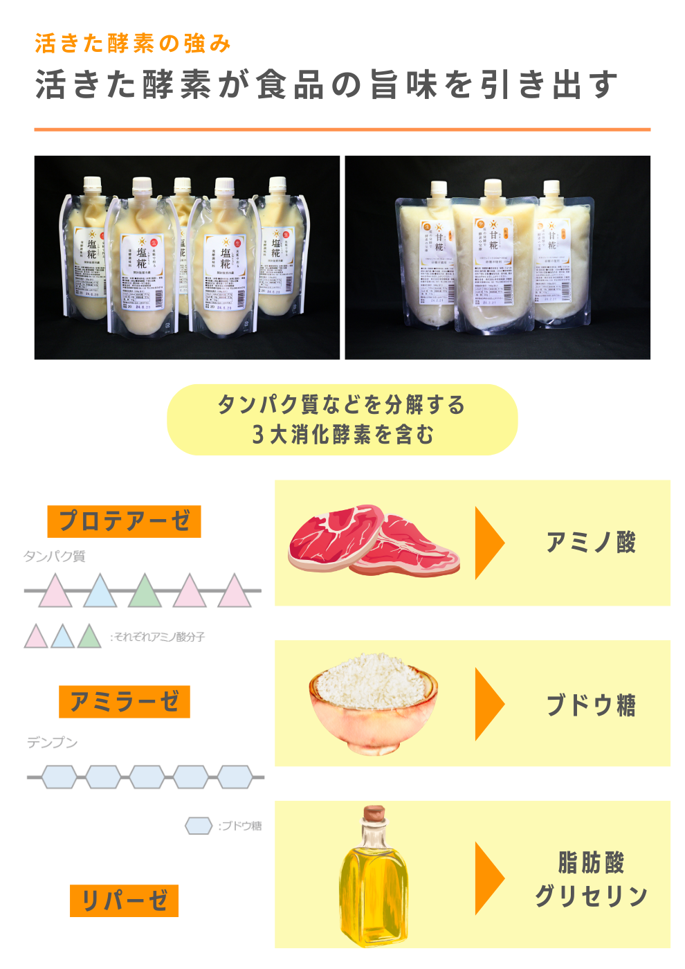仲宗根糀家の甘糀は3日間の発酵工程を踏んでいるため、手間をかけた分、自然な甘みが特徴です。