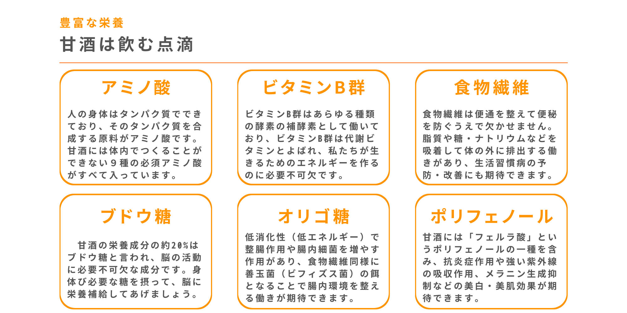 甘酒特有のクセがなく、まろやかな口当たりとなっております。