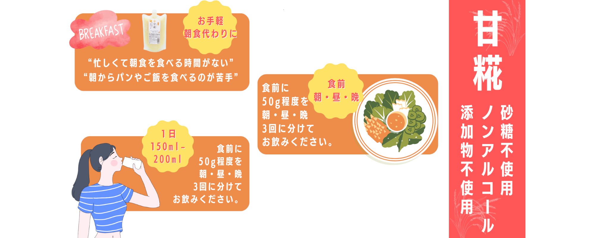 甘酒が苦手という方も、飲みやすく美味しいと大好評をいただいている