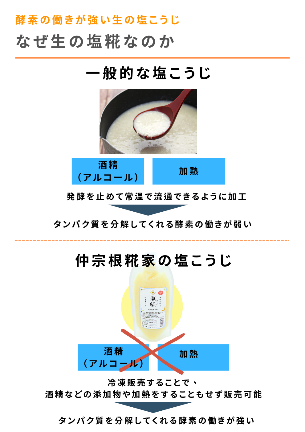 非加熱の生の塩こうじです。酒などの添加物は一切入れません。